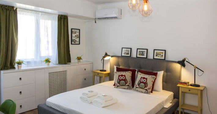 In Bucharest (Bucharest City-Centre). A stay at this apartment places you in the heart of Bucharest, steps from BRD Tower and 4 minutes by foot from Victoria Square. This apartment is 0.5 mi (0.9 km) from Museum of the Romanian Peasant and 0.6 mi (0.9 km) from George Enescu Museum. Make yourself comfortable in this individually decorated apartment, featuring a kitchen with a refrigerator and a stovetop. Theres a private balcony or patio. A flat-screen television with cable programming provides entertainment, while complimentary wireless Internet access keeps you connected. Conveniences include a desk and a microwave. Take in the views from a terrace.Datorita dinamicitatii domeniului disponibilitatea ofertelor se modifica de la un moment la altul. De aceea ofertele sunt valabile in limita locurilor disponibile. Agentia nu este responsabila pentru eventualele neconcordante care pot aparea intre informatiile privind tarifele si alte detalii din site si informatiile primite in agentie. In aceste cazuri vor avea prioritate, intotdeauna, informatiile primite in agentie.