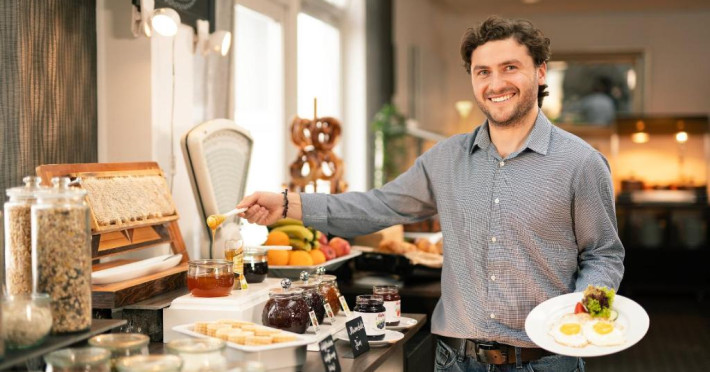 Restaurantul de la Victor's Residenz-Hotel München are o terasă și servește mancăruri de sezon și internaționale cu o selecție largă de vinuri.