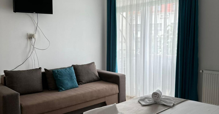 Victory Luxury Apartments sunt situate in zona Debarcader, zona linistita, potrivit pentru familii, la doar 3-4 minute de mers pe jos pana la plaja. Va informam ca incepand sezonul 2022 se va incasa la check-in taxa de statiune, in valoare de 3 lei/persoana/zi, suma ce reprezinta aTaxa de promovare a orasului Eforie Norda in urma hotararii nr. 325/17.12.2021 luate de consiliul local al orasului. Copiii sub 14 ani si persoanele cu handicap sunt scutite de la plata. Facilitati: Suprafata apartamentelor este intre 45 si 58 mp, fiind aflate la etaje superioare (complexul rezidential detine lift), parcare gratuita in limita locurilor disponibile. Dotari apartamente: Apartament vedere la mare este format dintr-un dormitor si un living cu canapea extensibila, bucatarie open space. Apartament 2 dormitoare este format din 2 dormitoare cu pat matrimonial si aer conditionat in ambele, bucatarie , nu are living. Apartament Deluxe Armand este format din 2 dormitoare cu pat matrimonial si aer conditionat in ambele (unul dintre dormitoare are si o canapea extensibila), bucatarie, nu are living. Dotari bucatarie: plita 4 ochiuri pe gaz, cuptor electric, hota evacuare, chiuveta cu scurgator, frigider cu congelator, cuptor microunde, espressor cafea, sandwich maker, fierbator apa, prajitor paine si toate ustensilele de bucatarie necesare. Fiecare apartament detine un balcon spatios, dotat cu o masa si 2 scaune confortabile pentru servit micul dejun sau cafeaua de dimineata. Facilitati copii in camera cu 2 adulti: Apartament vedere la mare - capacitate maxima 4 adulti+ 1 copil sub 7 ani Apartamente de 2 dormitoare - capacitate maxima 4 adulti+ 2 copii sub 7 ani Apartament Deluxe Armand - capacitate maxima 5 adulti+ 2 copii sub 7 ani Copil peste 7ani este considerat adult.Datorita dinamicitatii domeniului disponibilitatea ofertelor se modifica de la un moment la altul. De aceea ofertele sunt valabile in limita locurilor disponibile. Agentia nu este responsabila pentru eventualele neconcordante care pot aparea intre informatiile privind tarifele si alte detalii din site si informatiile primite in agentie. In aceste cazuri vor avea prioritate, intotdeauna, informatiile primite in agentie.