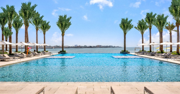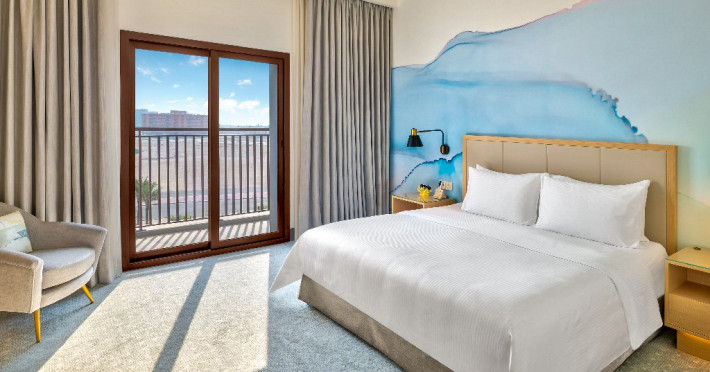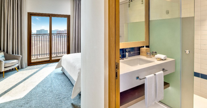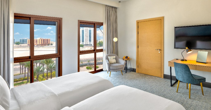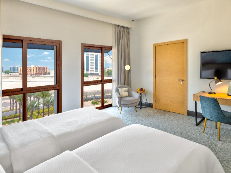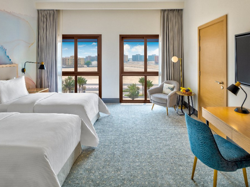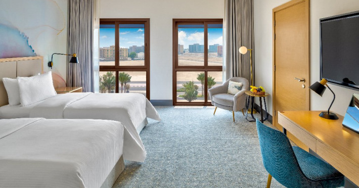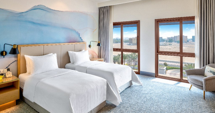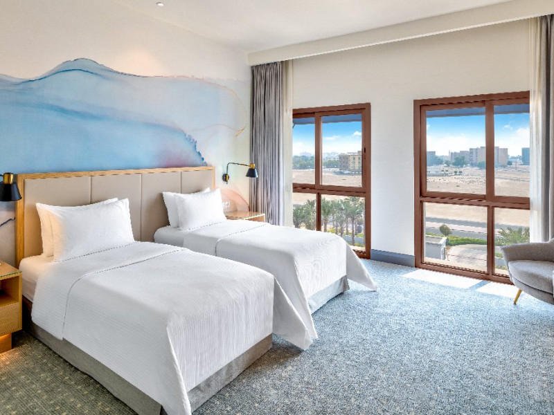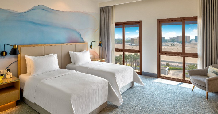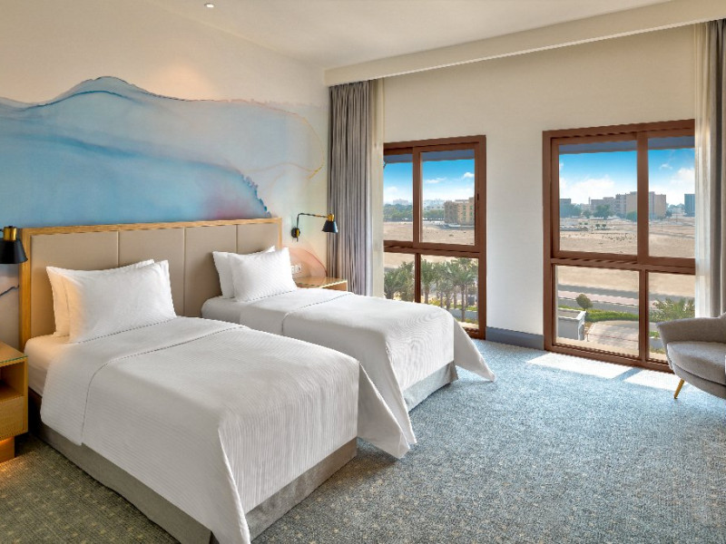 - Situat pe coasta Golfului Arabiei, cu acces direct la plaja