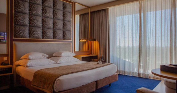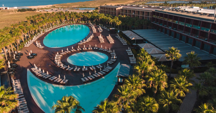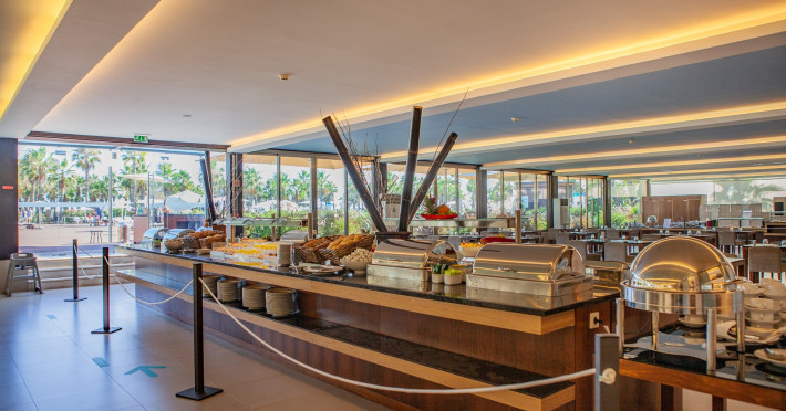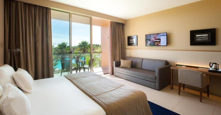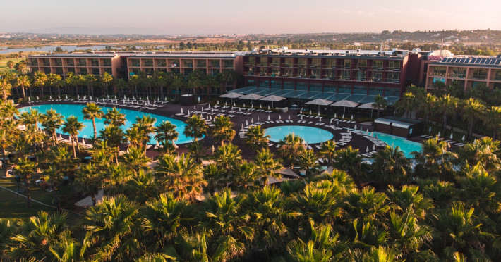 The hotel Vidamar Resort Hotel Algarve is located approximately 150 m from a public sandy beach and about 200 m from the sea. The nearest restaurants and bars can be found within 100 m. The nearest shops you can reach within around 8 km, a supermarket is around 800 m away. The beach is patrolled by a lifeguard and awarded a blue flag. Here, there are sun umbrellas available. Directly next to the beach there is a promenade where you can take leisurely walks. The air-conditioned, GPS-verified hotel is equipped with a 24h reception (check-in is possible around the clock), a lobby bar, Wi-Fi, internet access, a lift, cash machine, a hairdresser, a kiosk, a jacuzzi, a first aid kit as well as parking spaces (limited). In the outdoor area you will find a garden as well as a heated salt water pool (open all year), where pool towels are available for free. For children there is also a children's pool with a non-swimming area. Furthermore, you can relax outdoors on a terrace. Inside the hotel you can use a heated indoor pool. For very young guests, kid`s chairs can be provided. You can store your luggage in the hotel's storage room. There is also a laundry service. Ironing equipment can be rented at the hotel for a fee. For your comfort, in addition to the concierge service the hotel page will ensure you are looked after. If necessary, you can contact the medical centre. For conventions and other business meetings, the hotel offers a business centre as well as a conference area with tables, printer as well as a catering service. If you want to explore the holiday region, you can use the car and motorbike rental service close to the hotel. In addition, the hotel sells tickets for excursions. For guests on their honeymoon, the hotel has special offers such as personalised rooms/articles, special honeymoon packages or sparkling wine. In your hotel, a lot of focus is placed on sustainability. This includes a central room air-conditioning and environmentally-friendly cleaning. American Express and Euro/Master Card are accepted as means of payment. Due to its barrier-free facilities , such as a revolving door in the entrance area, an automatic hotel door, a hotel door that can be opened manually, barrier-free entrances, wheelchair accessible rooms and a wheelchair accessible lift, the hotel is also suitable for wheelchair users. Catering As catering services the hotel offers half board. Breakfast is offered from the buffet. Enjoy your lunch as a set meal. Dinner is also served as a buffet, as a set meal or à la carte. For the meals, there are a restaurant with terrace (Italian, Mediterranean and calorie-reduced dishes) and several bars as well as the pool bar. A picnic bench can be used by guests for self-catering. For dinner, guests are asked to wear appropriate clothing in the restaurant. Distances