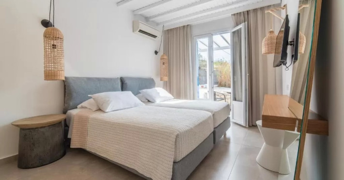 Cel mai apropiat aeroport este Aeroportul Syros Island, situat la o distanță de 34 km. La cerere proprietatea organizează transfer la/de la aeroport contra cost.