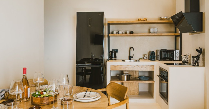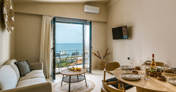 Superior Suite with Sea View / Family-type Suite unitati mai generoase, concepute pentru 2 - 5 persoane, cu zona de living, bucatarie complet utilata, baie privata si terasa/balcon cu vedere. Aceste apartamente sunt ideale pentru familii sau grupuri care isi doresc autonomie si spatiu.
