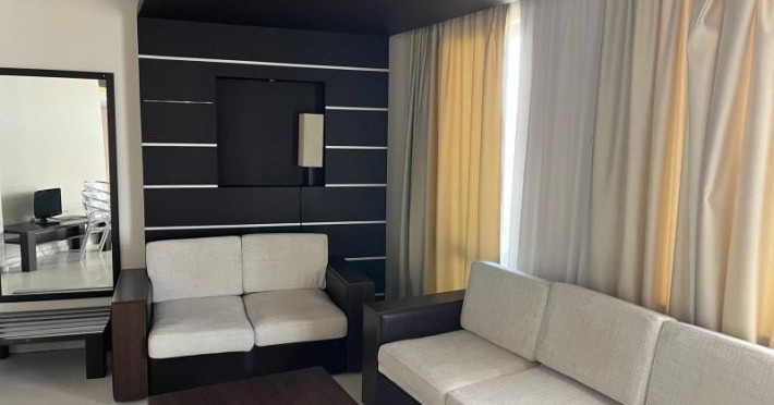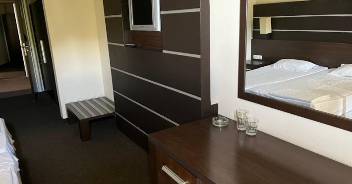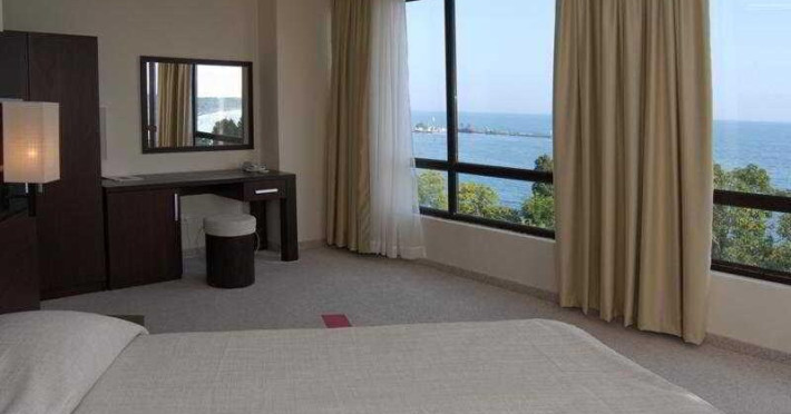 This apartment hotel is located 50 m from the beach in the new part of Nessebar in the immediate vicinity of the Old Town and overlooking the harbour. It lies just 150 m from the nearest links to the public transport network and the tourist centre and 27 km from Burgas. It is 27 km to Burgas Airport and 120 km to Varna Airport.This modern beach apartment hotel comprises 116 double rooms, 8 studios and 8 luxurious apartments with unique sea views. It is ideal for business travellers and holidaymakers alike. Facilities on offer to guests at this air-conditioned establishment include a lobby area with reception and check-out service, a hotel safe, a cloakroom and lift access. Younger guests can let off steam at the children's playground in the beautiful city park right next to the building. Rooms come with a private bathroom with a shower and a hairdryer and offer a king-size or double bed. They are equipped with cable TV, Internet access, a safe and a fridge. Furthermore, air conditioning and a fire alarm system are provided in all accommodation as standard and all units come with either a balcony or a terrace. In immediate vicinity there is a hospital with an emergency medical center, beauty & hair salon, bank, many supermarkets, other shops, as well as cafes, restaurants and bars.This apartment hotel is located 50 m from the beach in the new part of Nessebar in the immediate vicinity of the Old Town and overlooking the harbour. It lies just 150 m from the nearest links to the public transport network and the tourist centre and 27 km from Burgas. It is 27 km to Burgas Airport and 120 km to Varna Airport.This modern beach apartment hotel comprises 116 double rooms, 8 studios and 8 luxurious apartments with unique sea views. It is ideal for business travellers and holidaymakers alike. Facilities on offer to guests at this air-conditioned establishment include a lobby area with reception and check-out service, a hotel safe, a cloakroom and lift access. Younger guests can let off steam at the children's playground in the beautiful city park right next to the building. Rooms come with a private bathroom with a shower and a hairdryer and offer a king-size or double bed. They are equipped with cable TV, Internet access, a safe and a fridge. Furthermore, air conditioning and a fire alarm system are provided in all accommodation as standard and all units come with either a balcony or a terrace. In immediate vicinity there is a hospital with an emergency medical center, beauty & hair salon, bank, many supermarkets, other shops, as well as cafes, restaurants and bars.