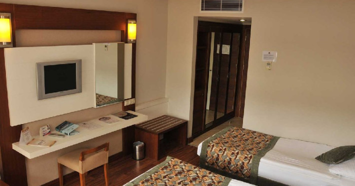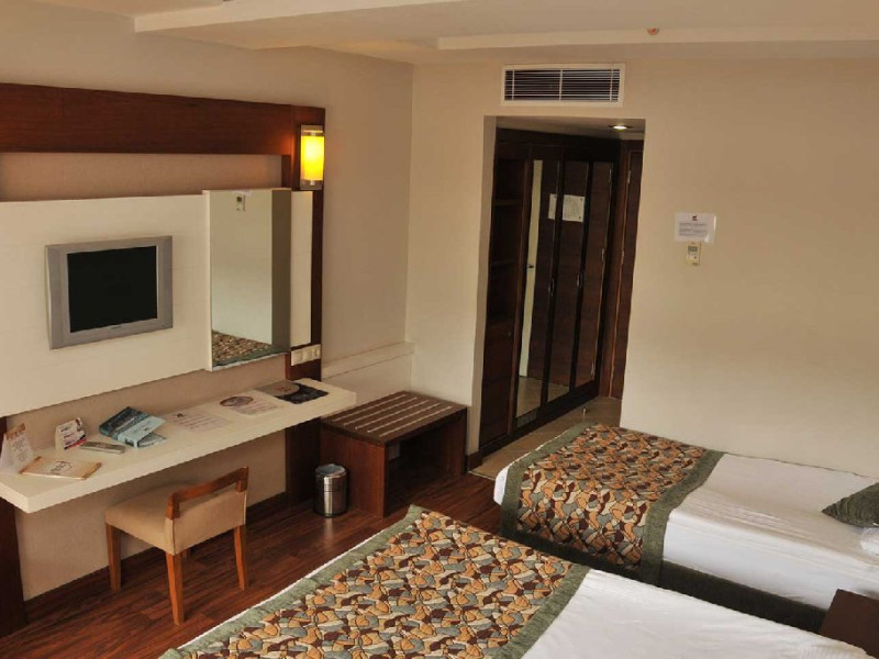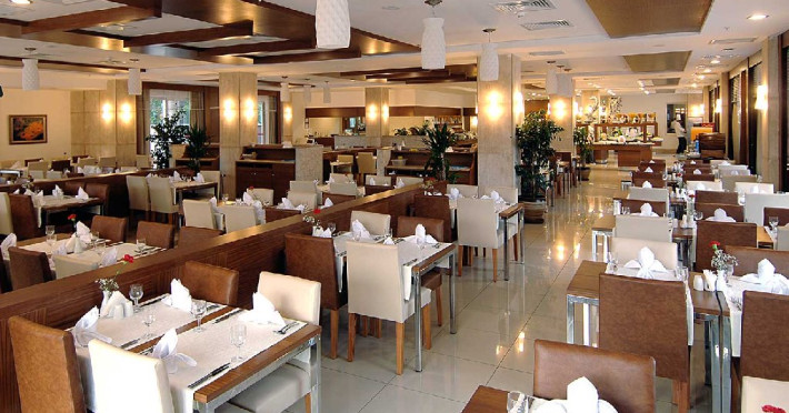 Facilitati camere: Hotelul are o cladire cu 4 nivele, 184 camere standard ce dispun de baie proprie, aer conditionat centralizat, seif (contra cost), balcon, telefon, televizor, minibar, room service (24 ore, contra cost), internet WiFi (gratuit).