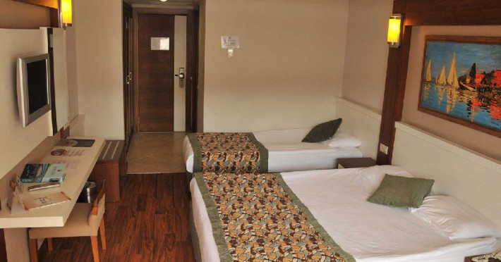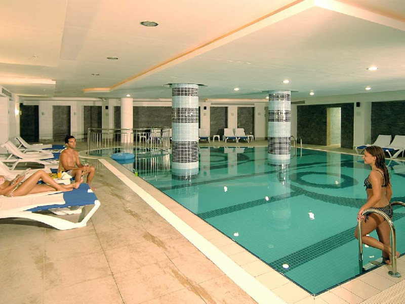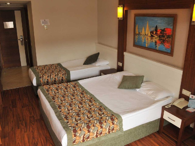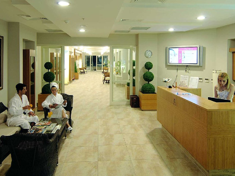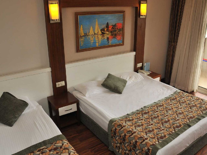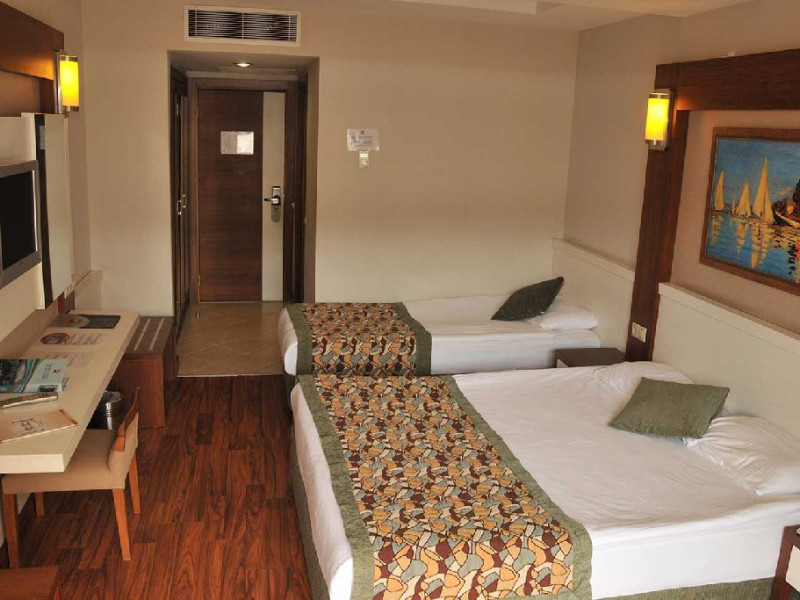 Facilitati hotel: Hotelul dispune de : restaurant, 3 baruri, sala de conferinte care poate gazdui 350 de persoane, piscina exterioara si piscina interioara, centru SPA, cabinet medical, spalatorie, coafor, lant de magazine, plaja Kemer care include servicii precum sezlonguri, umbrele, dusuri disponibile gratuit.