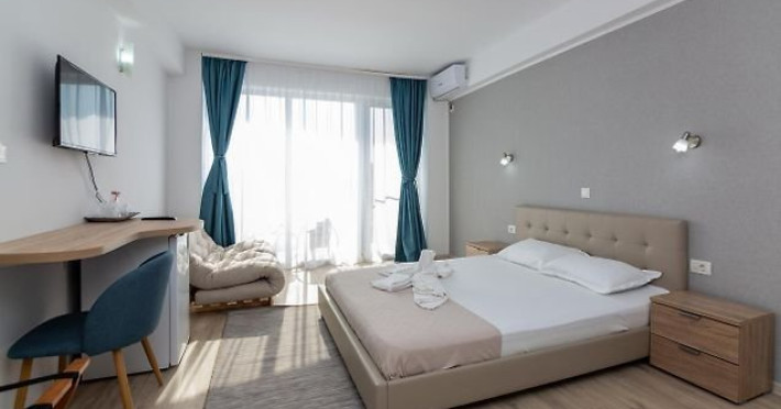 Toate camerele sunt dotate cu aer conditionat, televizor, baie cu cabina de dus si uscator de par, frigider, internet wireless, balcon cu masuta si scaune.