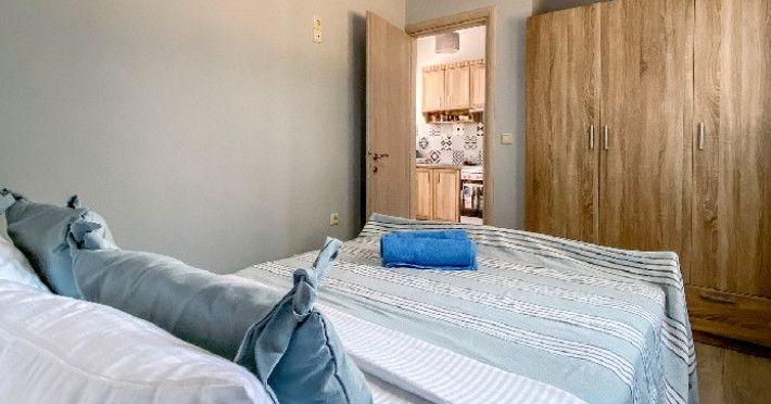 Facilitati apartamente: bucatarie utilata, toaleta cu dus, dormitor cu pat dublu, living cu canapea extensibila.