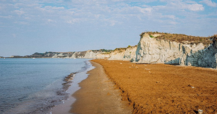 Plaja Xi este cu siguranta una dintre cele mai faimoase plaje cu nisip maro-roscat din Kefalonia.