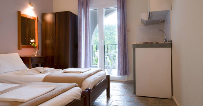 Vila este situata in zona Kolios, la 300 m de plaja cu acelasi nume si la 6 km de orasul Skiathos. Tot 6 km aveti de parcurs si pana la celebra plaja Koukounaries. Plaja Kolios este cu nisip si dispune de umbrele si sezlonguri (contra cost). Vila Albanis este alcatuită din 13 studiouri. La parter sunt 5 studiouri cu 2 paturi (Standard), la etaj sunt 8 studiouri complet renovate (Superior), cate 4 pe fiecare din cele doua nivele: un studio cu 2 paturi; un studio cu 2 paturi si o canapea; un apartament cu 2 camere, fiecare camera cu 2 paturi; un apartament cu 2 camere, o camera cu 2 paturi si o camera cu un pat matrimonial si o canapea. Piscina vilei dispune de dusuri, sezlonguri, umbrele, un mic umbrar si este inconjurata de gradini si verdeata specifice insulei. La 50 de metri de vila se afla un supermarket, iar la 200 de metri este statia autobuzului cu care se ajunge in oras sau la renumita plaja KoukounariesWebsite
