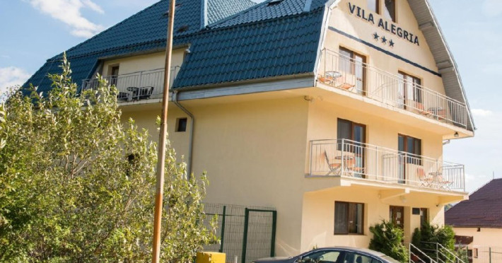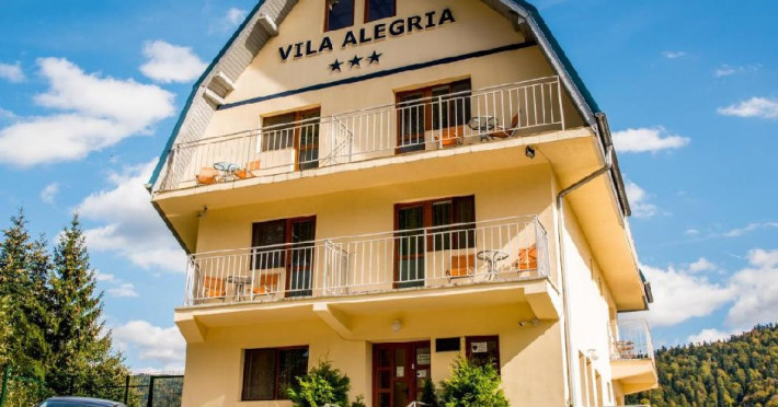 Vila Alegria se gaseste in Busteni, la 8,9 km de Castelul Peles, si are un lounge comun, o terasa, facilitati de gratar si parcare privata gratuita. Aceasta proprietate ofera o bucatarie comuna, precum si un teren de joaca pentru copii. Unele unitati de la proprietate au un balcon cu o vedere la munte.Unitatile de la aceasta pensiune sunt dotate cu televizor cu ecran plat si bucatarie. Camerele de la Vila Alegria au si WiFi gratuit si o baie proprie cu dus, iar unele camere speciale se mandresc si cu o vedere la oras. Camerele includ un frigider.
