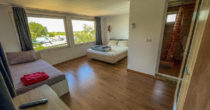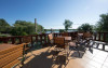 Meniul restaurantului este alcatuit preponderent din specialitati de peste. De asemenea, oaspetii isi pot savura mesele in timp ce admira vederea placuta de pe terasa de la malul apei.