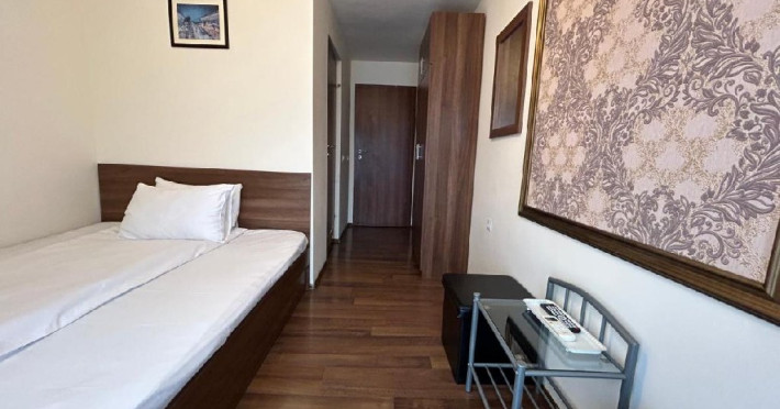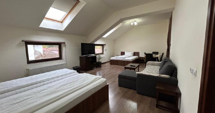 Camere cu baie proprie, televizoare LCD, internet wireless, sala de servit mic dejun, bucatarie complet echipata. Camera dubla cu pat matrimonial (capacitate maxima) 2 adulti si 1 copil pana la 3 ani inclusiv daca doarme in pat cu parintii. Camera twin (doua paturi de 1 persoana) se accepta maxim 2 adulti, fara copii indiferent de varsta. Camera tripla este formata din 1 pat matrimonial si 1 pat de o persoana, se accepta maxim 2 adulti si 1 copil SAU 3 adulti. Studio cu bucatarie proprie (cu 2 paturi matrimoniale) se accepta maxim 4 persoane, de regula 2 adulti si 2 copii SAU 3 adulti si 1 copil SAU 4 adulti. Trebuie sa se tina cont ca este o singura incapere cu 2 paturi matrimoniale.