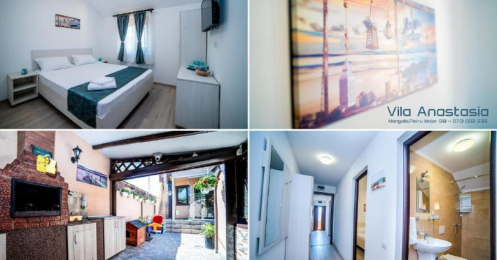 Vila Anastasia se găsește in localitatea Mangalia din regiunea Constanța, la mai puțin de 1 km de Plaja Mangalia și la 12 minute de mers pe jos de Plaja Farul Genovez, și oferă o terasă. Această pensiune de 3 stele oferă o grădină, precum și camere cu aer proprie și WiFi gratuit, care beneficiază toate de baie. Proprietatea are o bucătărie comună și un lounge comun.