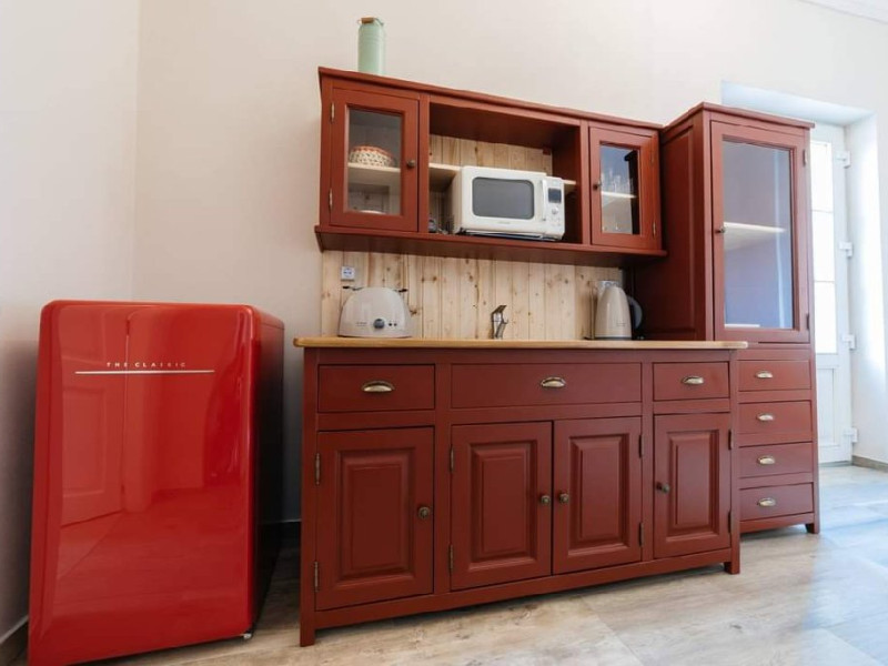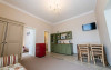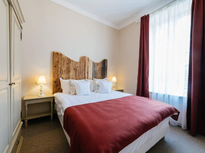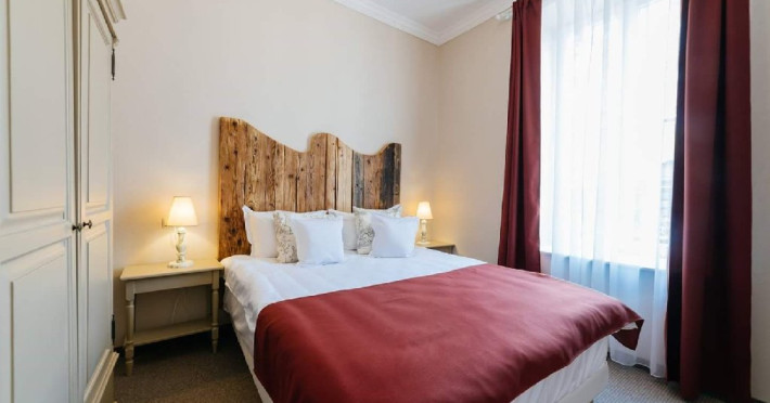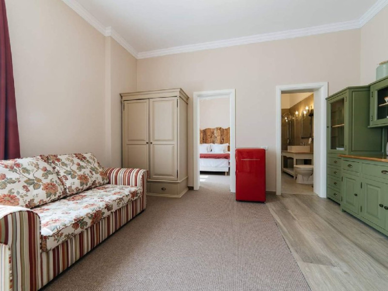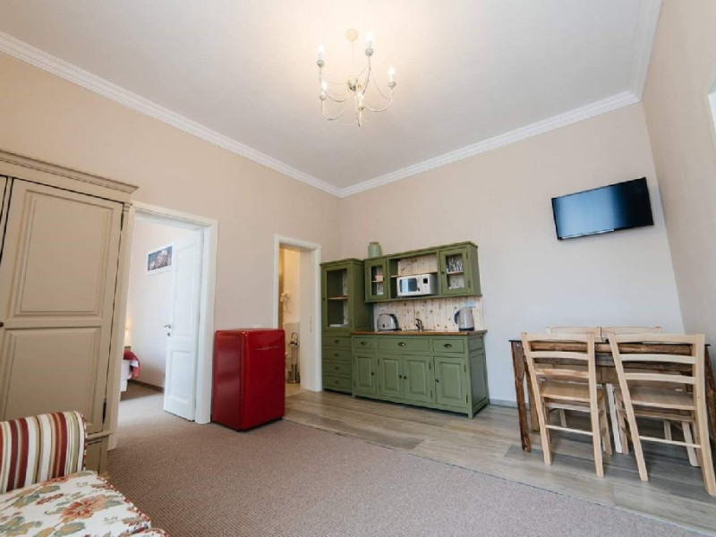 Garsoniera este dotata cu pat matrimonial 160/200 si o canapea extensibila de 140/200, spatiul dintre acestea fiind delimitat de un perete despartitor. De asemenea, in garsoniera vei avea o bucatarie complet utilata si un spatiu de luat masa. Toate baile sunt dotate cu cada si cosmetice.