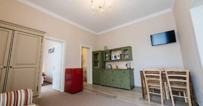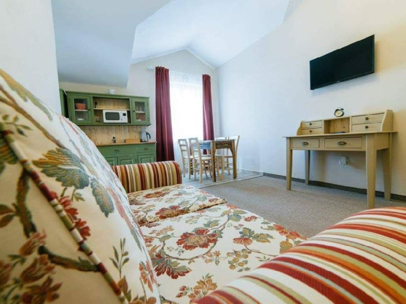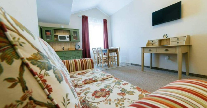 Apartamentele sunt alcatuite din doua camere separate, un dormitor cu pat matrimonial 160/200 si un living in care exista o canapea extensibila 140/200 cu bucatarie complet utilata si loc de luat masa.