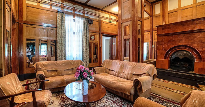 Printr-o spectaculoasa alternanta a lemnului cu vitraliile originale, in care camelia intruneste toate prerogativele unui laitmotiv imagistic, cu oglinzile de calitate si peretii zugraviti sau tapetati, ce imbratiseaza minunata scara interioara, se creeaza un inefabil joc pictural, accentuat de tusele negre.