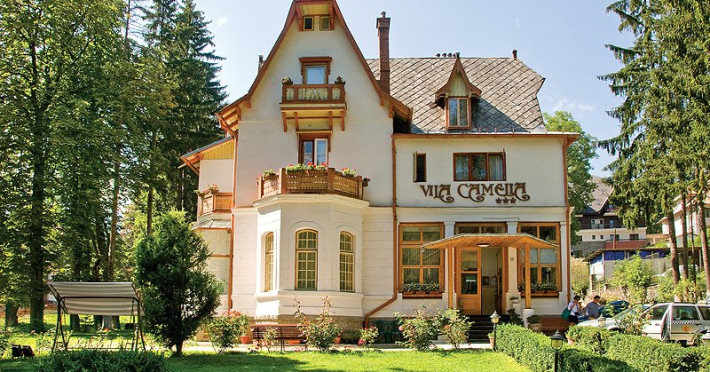 Vila Camelia- individualizata de proportionalitatea armonioasa a exterioarelor si de personalitatea deosebita a interiorului, intruneste toate conditiile necesare pentru un sejur familial, intim si select.