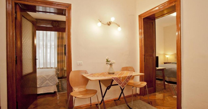 Apartamentul dispune de doua dormitoare, un living separat unde se afla o canapea extensibila si o chicineta.
