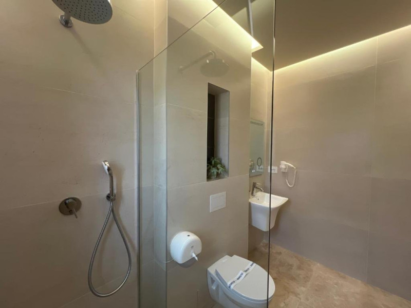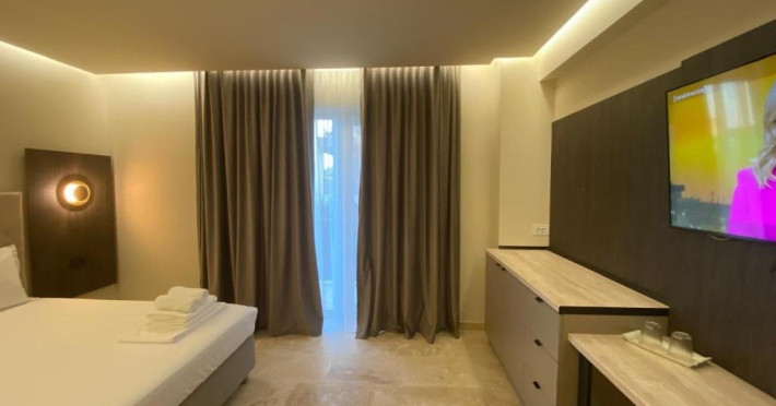 Toate spatiile de cazare dispun de pat matrimonial (160x200), aer conditionat, smart LED tv, wi fi, minibar, seif, acces pe baza de card magnetic, baie moderna cu dus, uscator de par si cosmetice hoteliere.