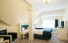 Sunt dotate cu TV, minibar, baie cu cada in apartamente, baie cu dus in camere.
