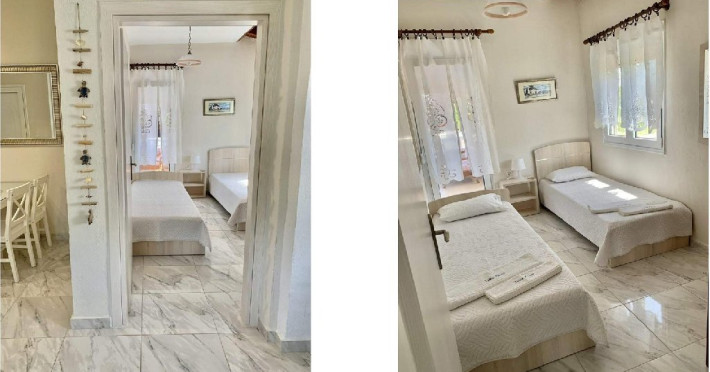 Dormitor - 2 paturi de o persoana. In living/bucatarie sunt 2 paturi de o persoana.