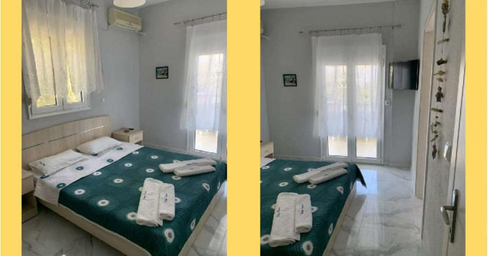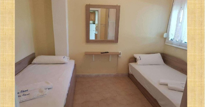 Localizare: Studioul Vila Eleni Apartments se afla pe bratul Kassandra, la 80 km de Aeroportul Macedonia Salonic, la 600 m de centrul statiunii Polichrono.Polichroni este una dintre cele mai mari statiuni din Halkidiki.Distanta fata de plaja este de 50 m. Sezlonguri sunt oferite gratuit (doar 10 sezlonguri si 5 umbrele de soare) insa turistii pot veni cu propriile sezlonguri pentru a sta la plaja.