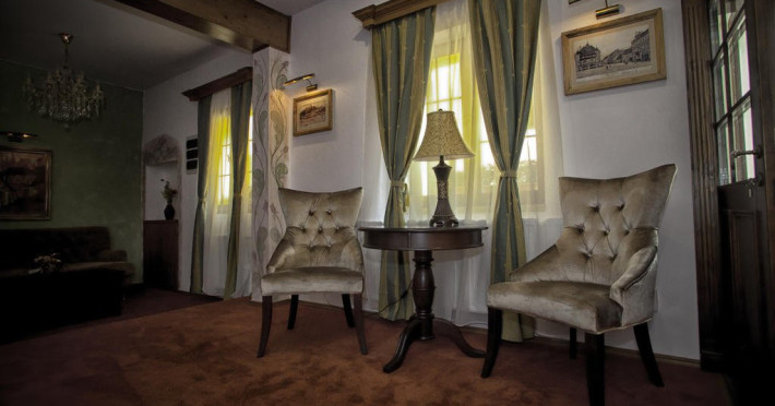 Camera standard: camera cu o suprafata de 26mp include mobilier din lemn masiv (anno 1600) compus din pat matrimonial, secretaire, sifonier.Desi are un aspect Antique, camera, este dotata cu utilitati moderne: TV prin satelit, telefon, minibar, seif, Wi-Fi gratuit si o baie proprie cu dus si uscator de par.