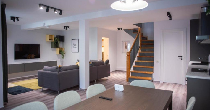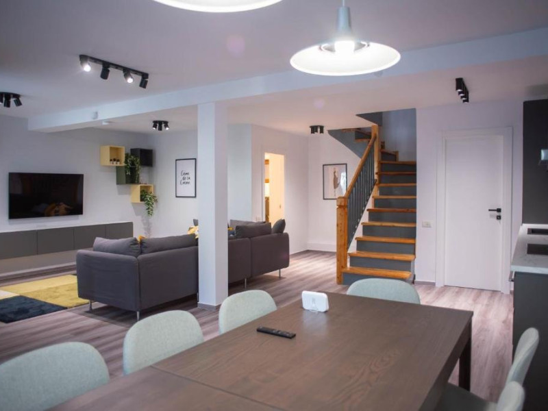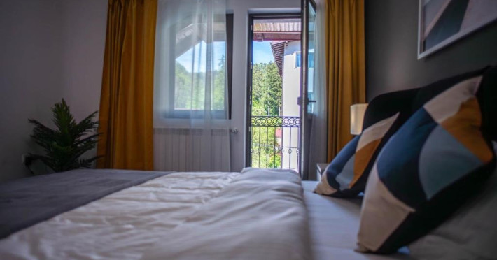 Lapoalele masivului Caraiman, in Busteni, Vila Happy Busteni este sederea de vispentru cei in cautare de liniste si relaxare. Vila Happy Busteni este o vila delux noua destinata celor ce vir sa scape de stresul si agitatia oraselor si nunumai, in cautarea acelui loc numit acasa, departe de casa. Living-ul spatioscu toaleta de serviciu, bucataria complet utilata si cele 3 dormitoare cu baiproprii va asteapta sa petreceti clipe minunate intr-o atmosfera relaxanta. Incurte veti gasi zona de barbeque si 2 locuri de parcare.Datorita dinamicitatii domeniului disponibilitatea ofertelor se modifica de la un moment la altul. De aceea ofertele sunt valabile in limita locurilor disponibile. Agentia nu este responsabila pentru eventualele neconcordante care pot aparea intre informatiile privind tarifele si alte detalii din site si informatiile primite in agentie. In aceste cazuri vor avea prioritate, intotdeauna, informatiile primite in agentie.