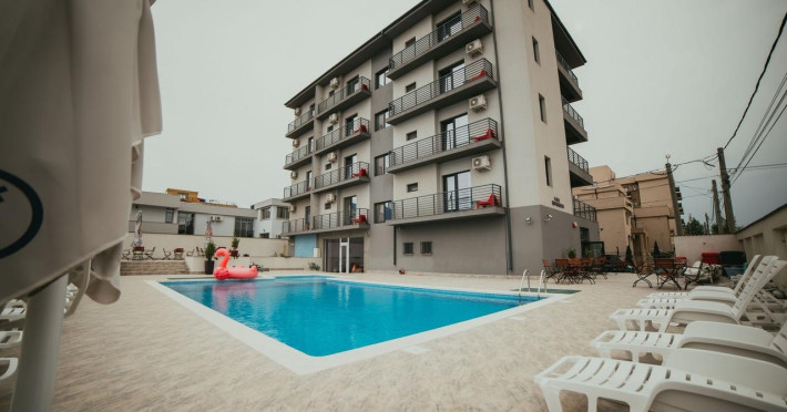 Facilitati hotel: gradina, terasa si un lounge comun, loc de joaca pentru copii, piscina exteriaora pentru adulti si copii, aer conditionat, balcon, parcare