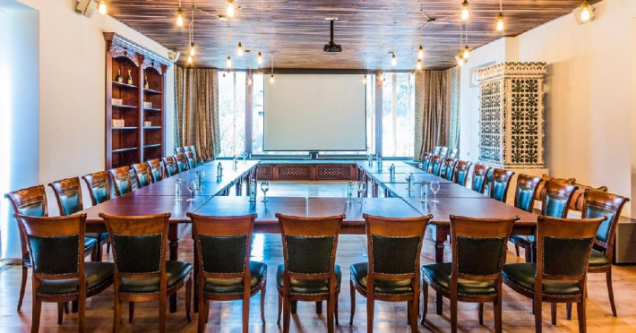 Spatiul acesta generos si discret, construit recent si gandit ca o extensie moderna a vilei, capabil sa primeasca 50-60 de oaspeti, cu ferestre mari, care parca aduc muntele mai aproape, cu pereti din lemn atent prelucrat, este ideal pentru sesiuni de team building, conferinte, reuniuni, evenimente de familie sau petreceri cu prietenii.