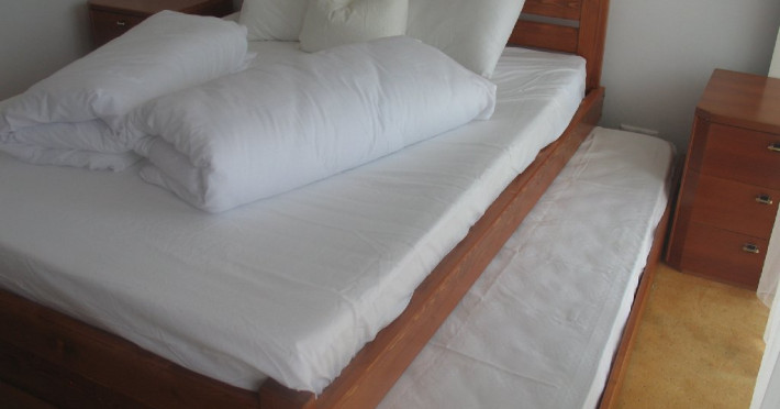 - cam. 3: camera dubla cu un pat matrimonial si 2 paturi suplimentare (extensii ale patului matrimonial), baie proprie cu dus (capacitate maxima 2 adulti+2 copii pana in 17 ani)