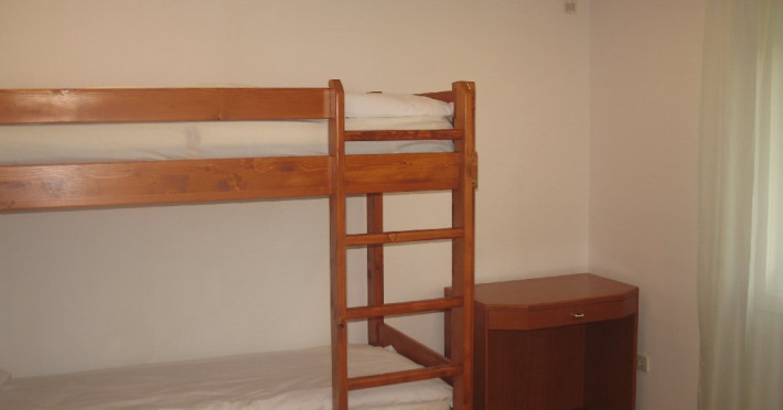 - cam. 5: camera cu pat matrimonial si 2 paturi suplimentare (extensii ale patului matrimonial) si un pat etajat, baie proprie cu cada, terasa (capacitate maxima 2 adulti+4 copii pana in 17 ani)