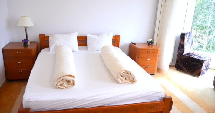 Vila Liliacul ****, organizata pe parter cu o garsoniera si un apartament cu doua dormitoare si un living (max. 8 locuri), etaj organizat similar, doar ca apartamentul are un singur dormitor si demisol cu un apartament su dormitor, living si bar (max. 4 locuri).