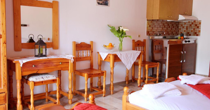 Camerele de la Vila Liotrivi au în dotare aer condiționat și Tv. Unele camere au balcon cu vedere la mare, unde oaspeții pot admira apusul sau răsăritul soarelui. Oaspeții au acces gratuit la serviciul Wi-fi în camere. Fiecare unitate de cazare include o chicinetă utilată cu frigider și ustensile de bucătărie. Proprietatea oferă camere pentru familie cu o suprafață mai mare și un număr mai mare de paturi față de cele standard.
