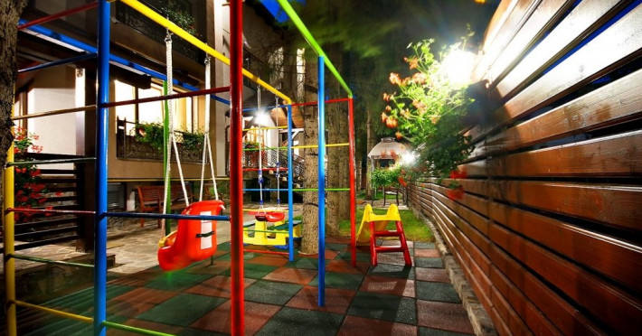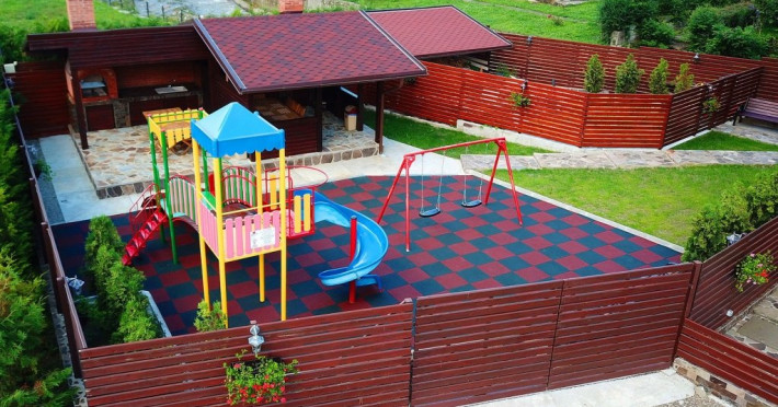 In curtea interioara a vilei este amenajata o zona de relaxare cu loc de joaca pentru copii, 3 foisoare acoperite din care doua au si gratar si loc pentru ceaun.