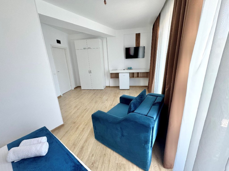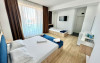 Camera dubla standard - suprafata 17 mp, detine pat matrimonial, nu permite adaugarea unui pat suplimentar. O parte dintre camere au vedere la parcare, iar celelalte ofera vedere partiala la mare.