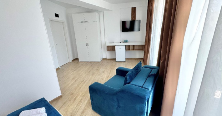 Camera dubla superioara - suprafata 20 mp, dotata cu pat matrimonial si fotoliu extensibil. Camerele pot avea vedere frontala sau laterala la mare.
