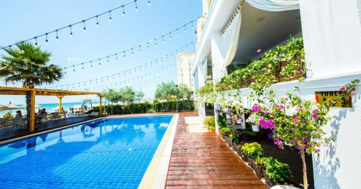 Localizare: hotelul se bucura de o pozitie privilegiata pe o plaja privata. Statia de autobuz se afla chiar langa hotel. Centrul orasului Durres se afla la 10 km, dar cel mai apropiat magazin este la 20 m de hotel. Portul pentru ferry este la 9 km, iar aeroportul Tirana la 35 km.Facilitati hotel: restaurantul hotelului serveste preparate mediteraneene, bar cu terasa. Plaja proprie pune la dispozitia turistilor sezlonguri si umbrelute. Hotelul dispune si de o parcare proprie si internet.