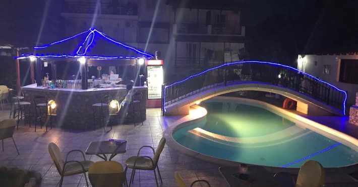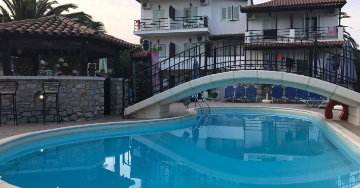 Vila Panos se afla la doar 2 minute de plaja cu nisip Agia Paraskevi, la 500 m de plaja Kolios & la 800 m regasiti plaja Troulos, 6 km de orasul Skiathos. In apropierea vilei exista o multime de supermarketuri, restaurante si taverne, de unde turistii pot servi preparate traditionale grecesti proaspete. Statia de autobus este la doar 30 m distanta, si puteti astfel accesa si celelalte plaje ale insulei. Vila Panos pune la dispozitia turistilor o piscina si bar la piscina.Localizare