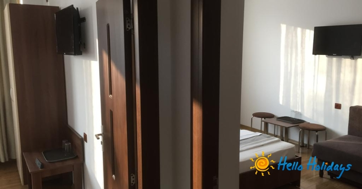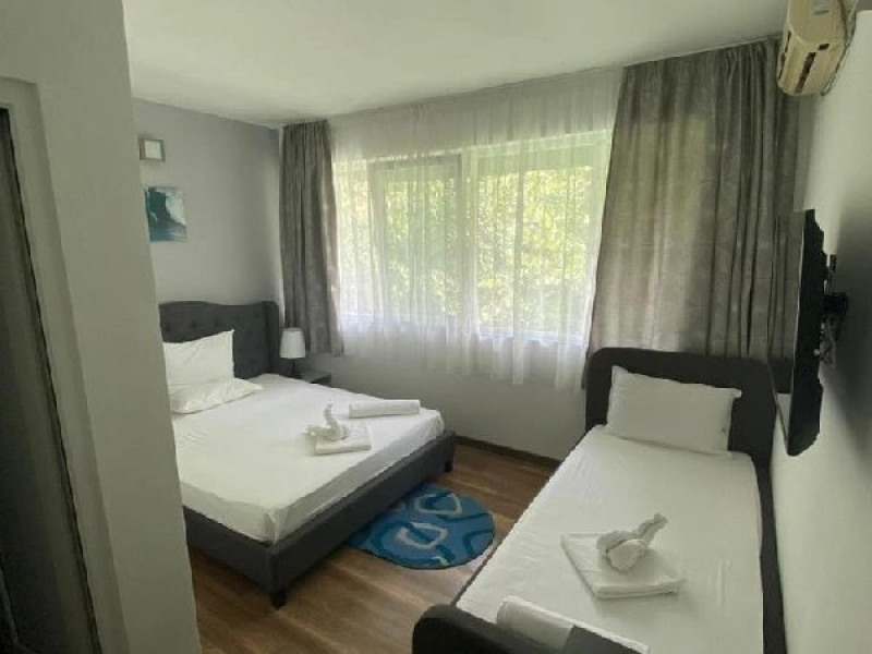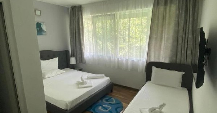 Apartamentele sunt compuse din doua dormitoare matrimoniale (unul cu pat de 160x200, celalalt cu pat de 140x200 si o canapea extensibila), baie cu cabina de dus si balcon. Ambele camere au aer conditionat, tv, wi fi si usa. Suprafata 30 mp.