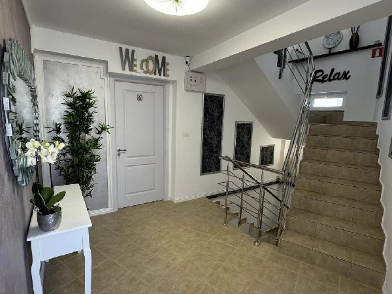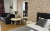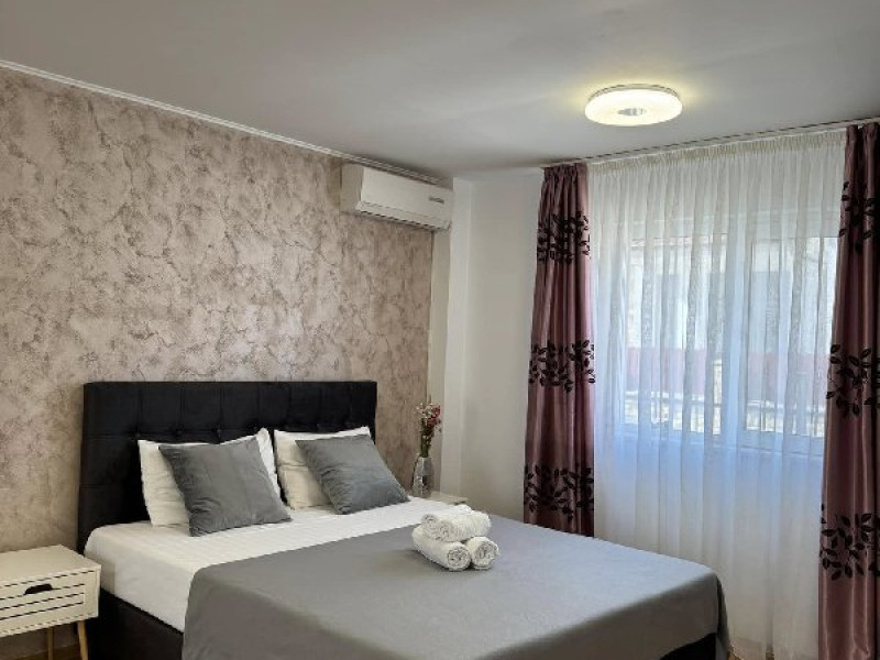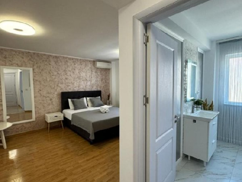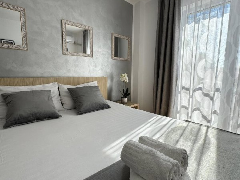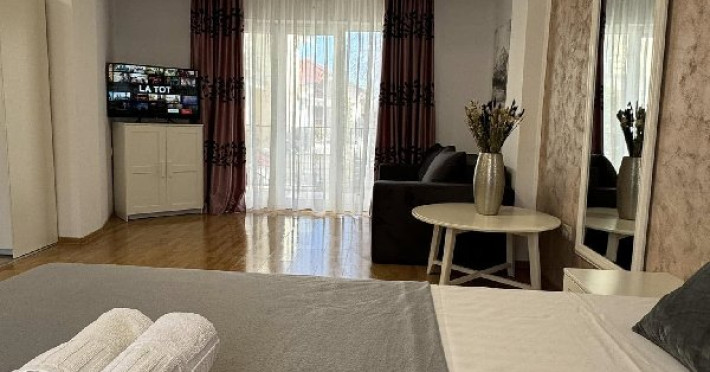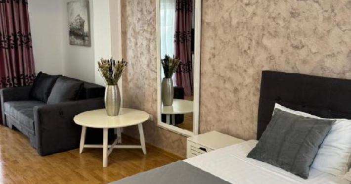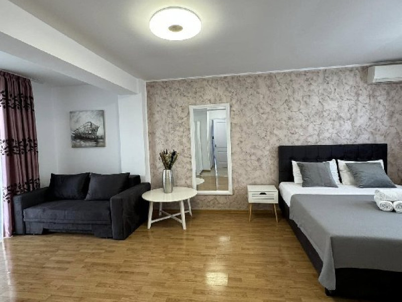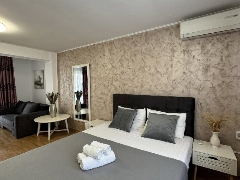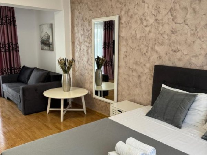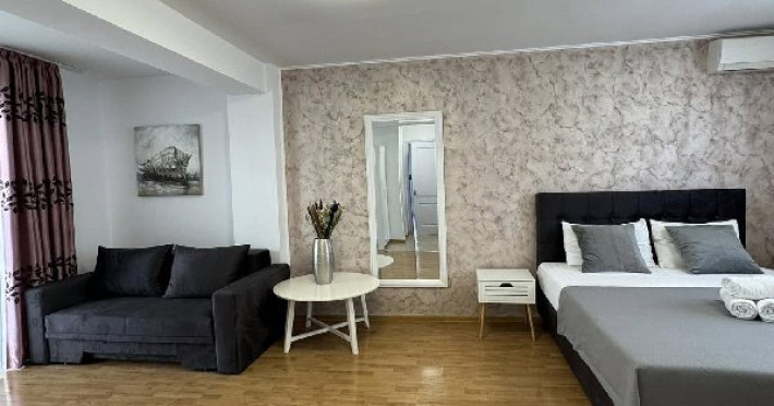 Apartament tip studio: dormitor matrimonial, living cu canapea extensibila, 1 baie.