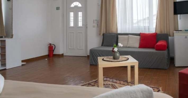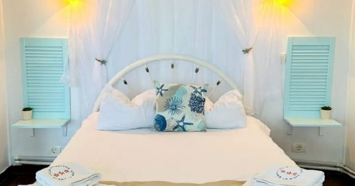 Vila este localizata in Vama Veche pe strada principala, chiar pe DN, la aprox. 500 m de plaja, intr-o zona linistita. Ne dorim pentru oaspetii nostri o atmosfera relaxata, zen, sa se simta ca acasa, dar in acelasi timp in vacanta.Descriere camere: Toate camerele au intre 20-22 m si arata la fel: un pat matrimonial sau twin bed si o canapea extensibila, frigider, TV, AC, prosoape. Pretul camerei difera in functie de numarul de persoane cazate si nu de tipul camerei.