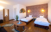 Toate camerele au intre 20-22 m si arata la fel: un pat matrimonial sau doua paturi si o canapea extensibila, frigider, TV, AC, prosoape. Pretul camerei difera in functie de numarul de persoane cazate si nu de tipul camerei.