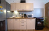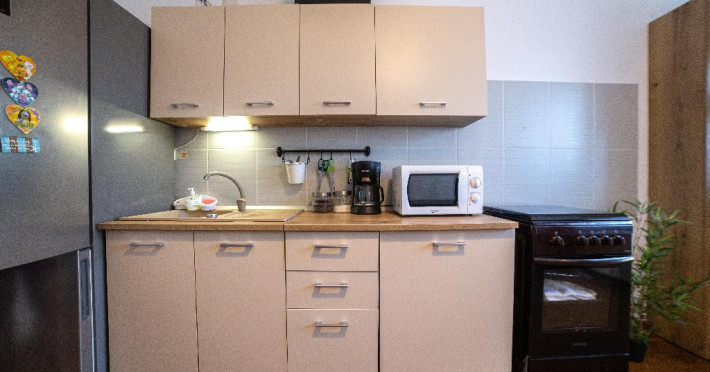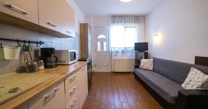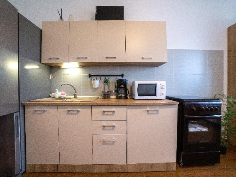 • bucatarie complet utilata care poate fi folosita de turisti pentru prepararea unui mic dejun sau ceva basic ( nu este permis sa se gateasca la propriu);