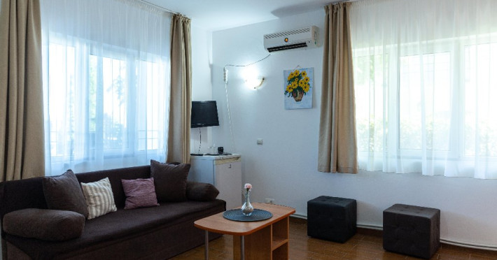Toate camerele au intre 20-22 m si arata la fel: un pat matrimonial sau doua paturi si o canapea extensibila, frigider, TV, AC, prosoape. Pretul camerei difera in functie de numarul de persoane cazate si nu de tipul camerei.