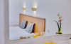 The rooms feature wooden furniture and equipped with a refrigerator, a telephone and a desk. They include a private bathroom with shower.