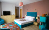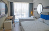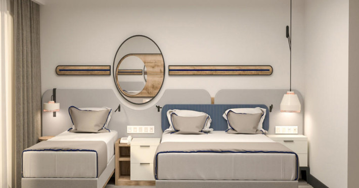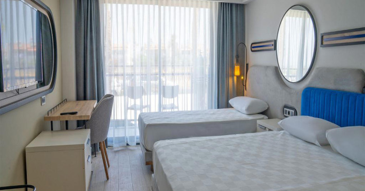 Camera tripla deluxe, cu o suprafata de 35 mp, este dotata cu pat matrimonial si o canapea extensibila, AC, TV, internet, minibar, baie cu dus, uscator de par, balcon.
