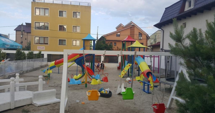 De asemenea, oaspeti se pot relaxa la piscina exterioara, atat pentru adulti cat si pentru copii, iar cei mici au la dispozitie un loc de joaca amenajat in apropierea piscinei si dotat cu tobogane, leagane si nisip.