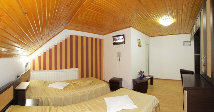 Facilitati: baie proprie cu cabina de dus cu hidromasaj, acces internet, TV color + cablu, frigobar, telefon, balcon.
